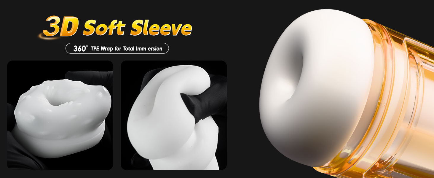 Soft TPE material, realistic 3D texture - It is made of environmentally friendly, ultra-soft TPE material with realistic 3D texture particles in the inner channels, creating stronger tactile stimulation and a feeling of being enveloped!