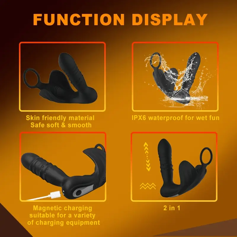 Triple pleasure – This vibrator simultaneously stimulates the prostate, testicles, and P-spot, providing intense sensations of pleasure. It prolongs intercourse and ejaculation time, thereby enhancing sexual performance.